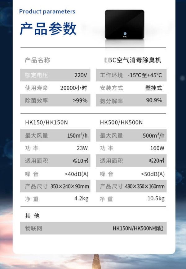 商品名称:EBC英宝纯 HK500N 空气消毒除臭机