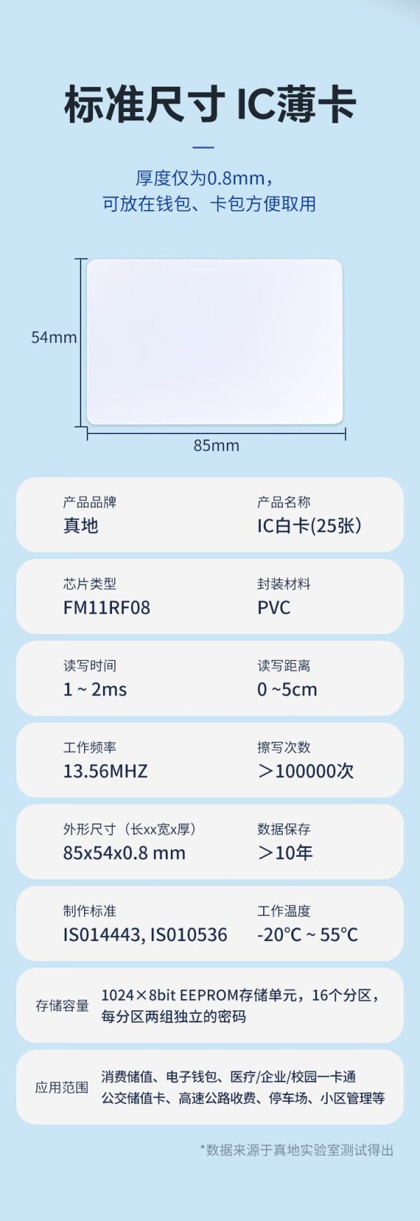 商品名称:真地(Realand) FM11RF08 25张/盒 IC卡白卡 白色 (计价单位:盒)
