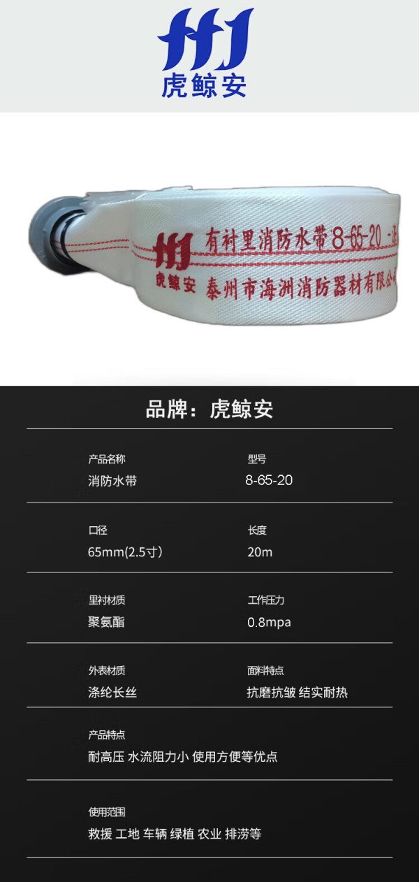 商品名称:虎鲸安GJC- 8-65-20 消防水带 聚氨酯水带(含接口)单位:套