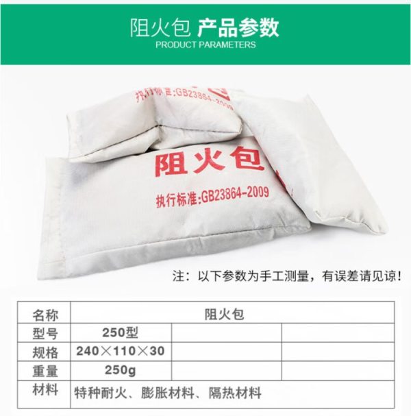 商品名称:虎鲸安 GJC-250 阻火包 尺寸:240*110*30MM 单位:包