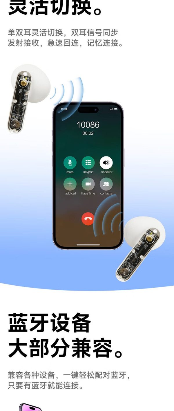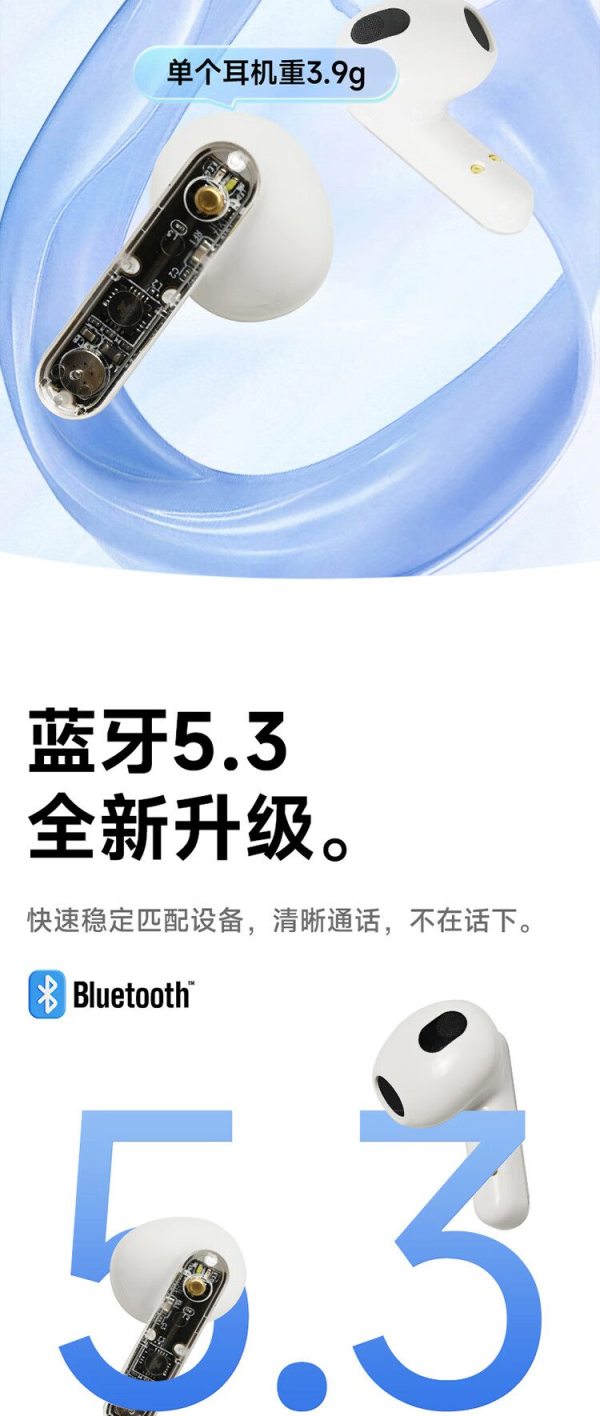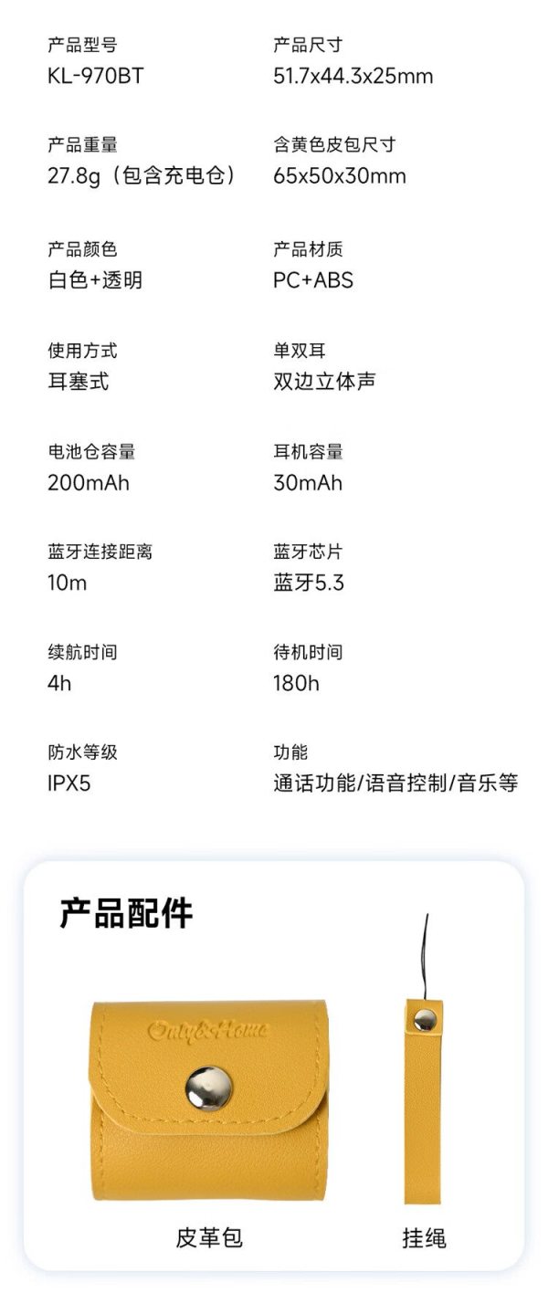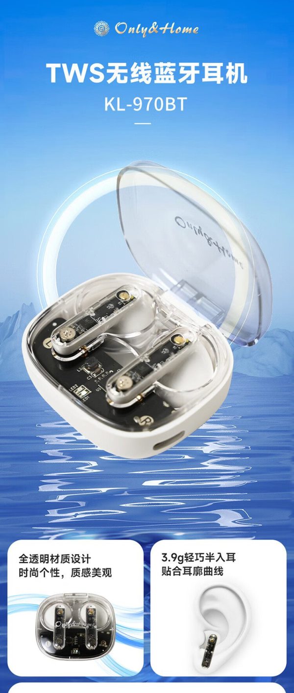 商品名称:Only&Home KL-970BT 蓝牙5.3 TWS无线蓝牙耳机 白色+透明(单位:个)