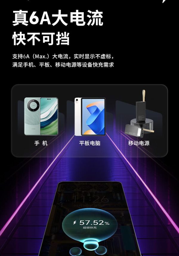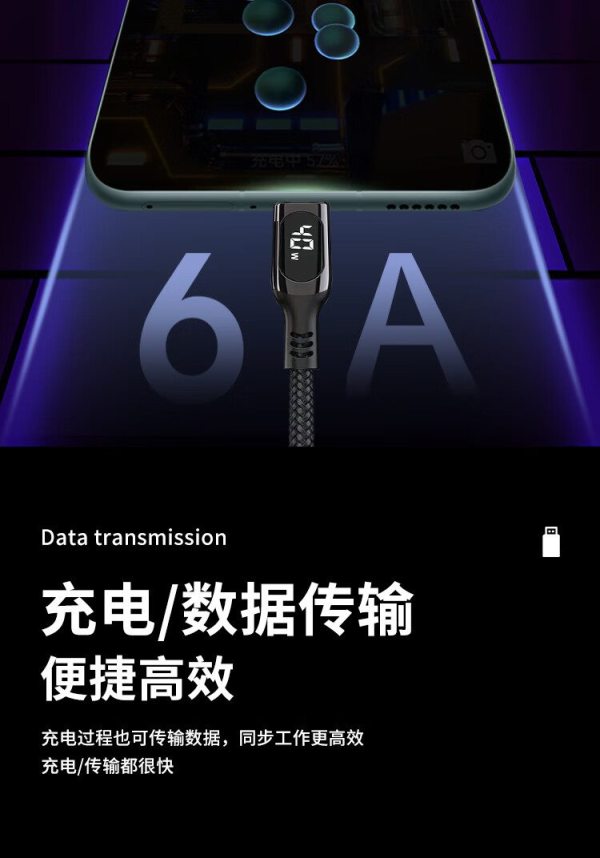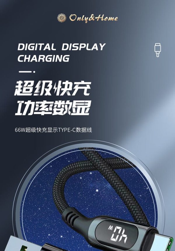 商品名称:Only&Home KL-XH01 线长1.6米 66w超级快充显示Type-c数据线 黑色(单位:条)