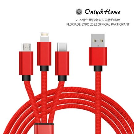 Only&Home KL-YTS04 线长1.2米 一拖三布艺数据线 红色(单位:条)