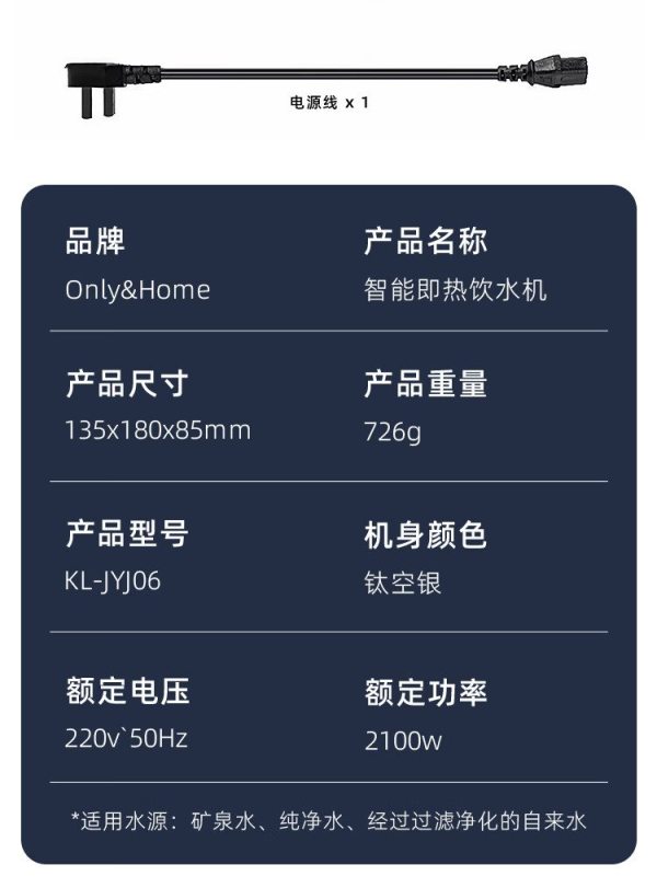商品名称:Only&Home KL-JYJ06 4档温度,3秒即热 智能即热饮水机(HUAWEI HiLink 生态产品)钛空银 (单位:台)