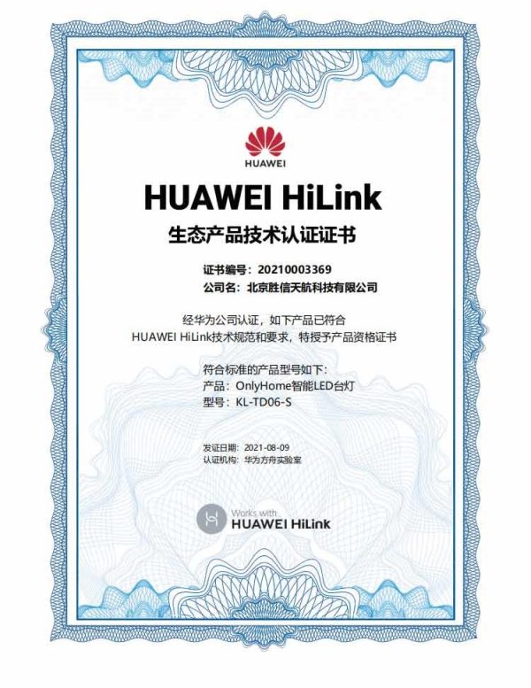 商品名称:Only&Home KL-TD06-S 三挡调节 柔和的白光不伤眼 智能LED台灯 (HUAWEI HiLink 生态产品)黑色 (单位:个)
