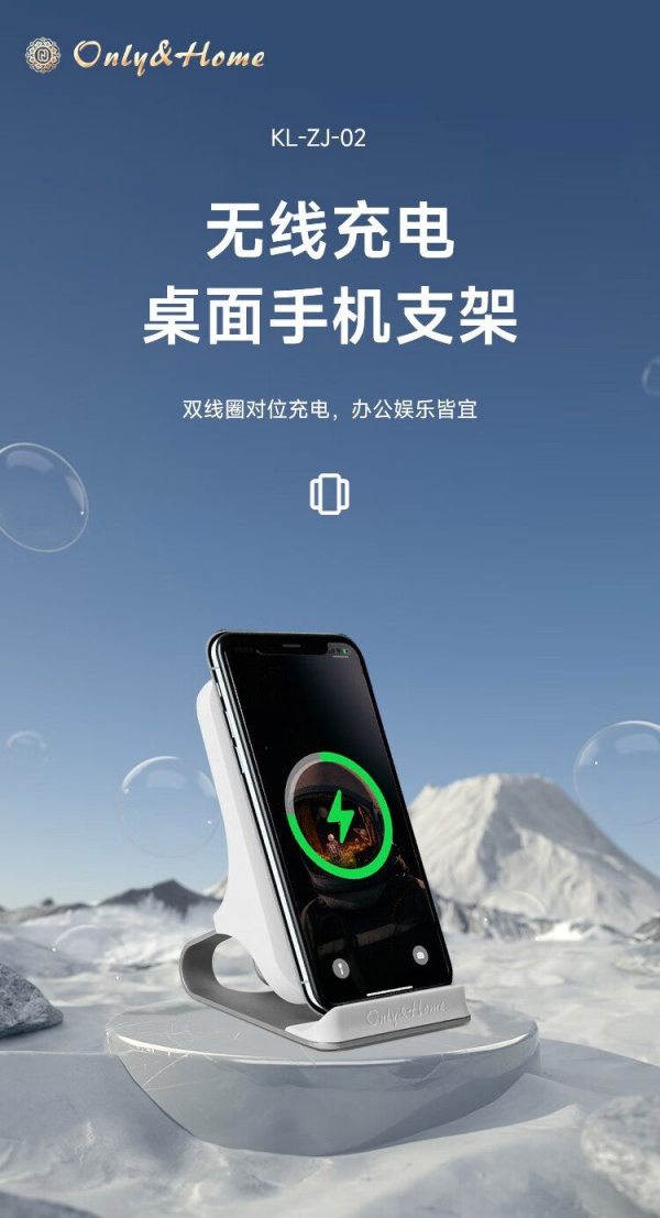Only&Home KL-ZJ-02 支持所有QI无线充电 QI无线金属手机支架 亚光磨砂白 (单位:个)