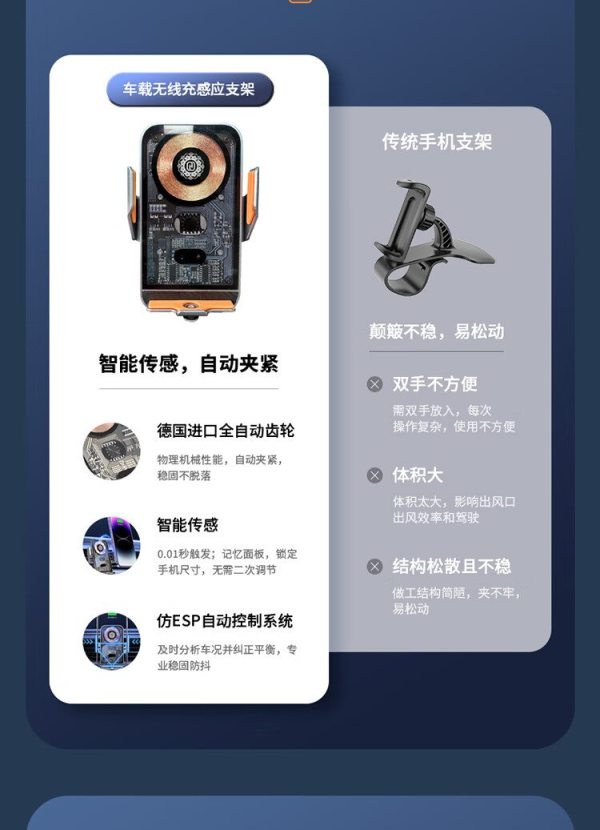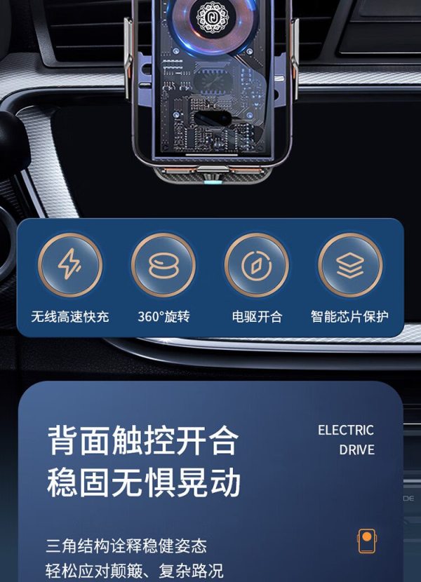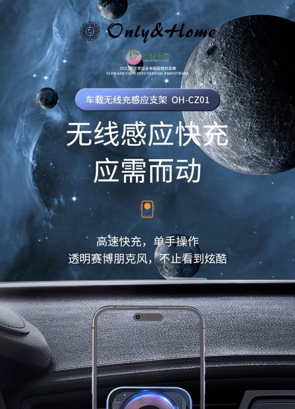 商品名称:Only&Home OH-CZ01 可360度调节灵活角度横竖屏都能用 黑色 车载无线充感应支架(单位:个)