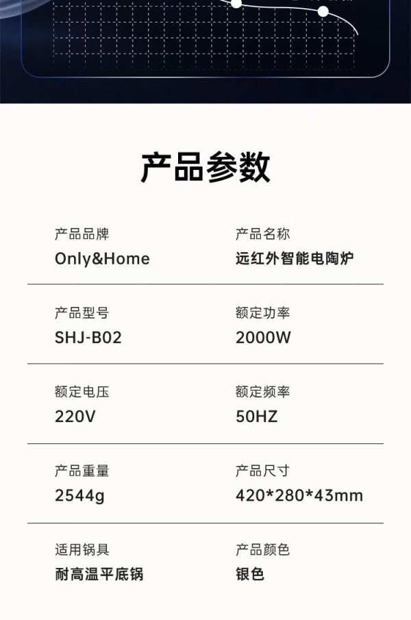 商品名称:Only&Home SHJ-B02 数秒达到500-600度高温 不挑锅 银色 (单位:台)