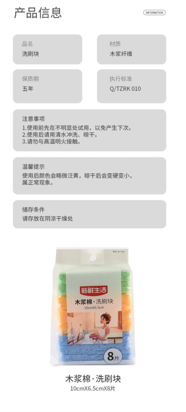 商品名称:新鲜生活 SH-7156 10cm*6.5cm*8片木浆棉 洗刷块(单位:包)