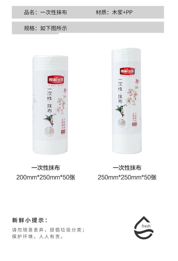 商品名称:新鲜生活 SH-7525 抹布干湿两用厨房用品纸吸水巾加厚 200mm*250mm 50张一次性抹布(单位:包)