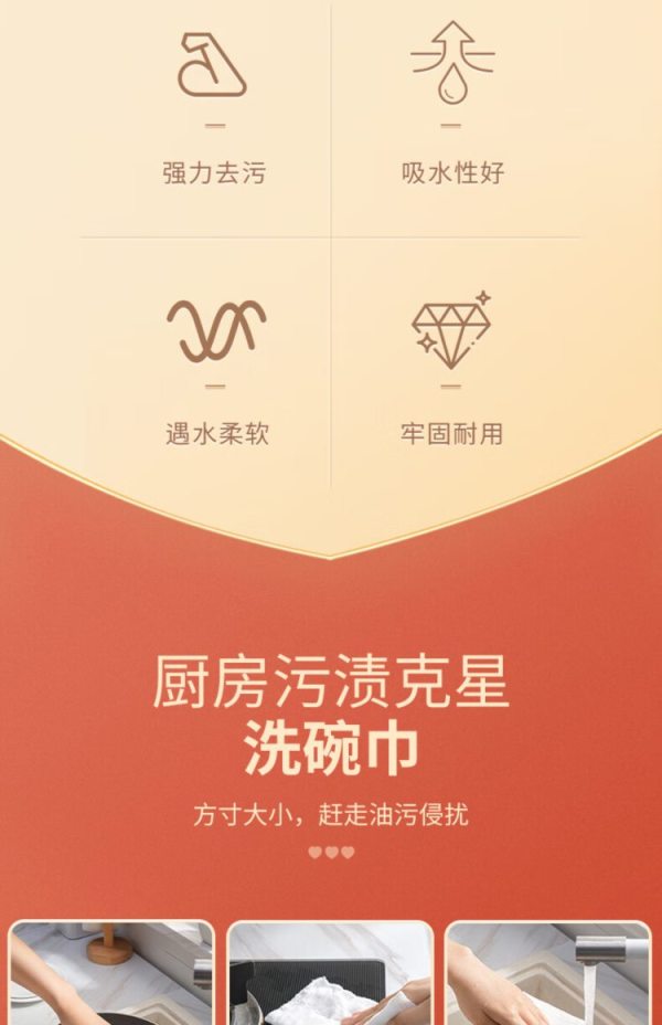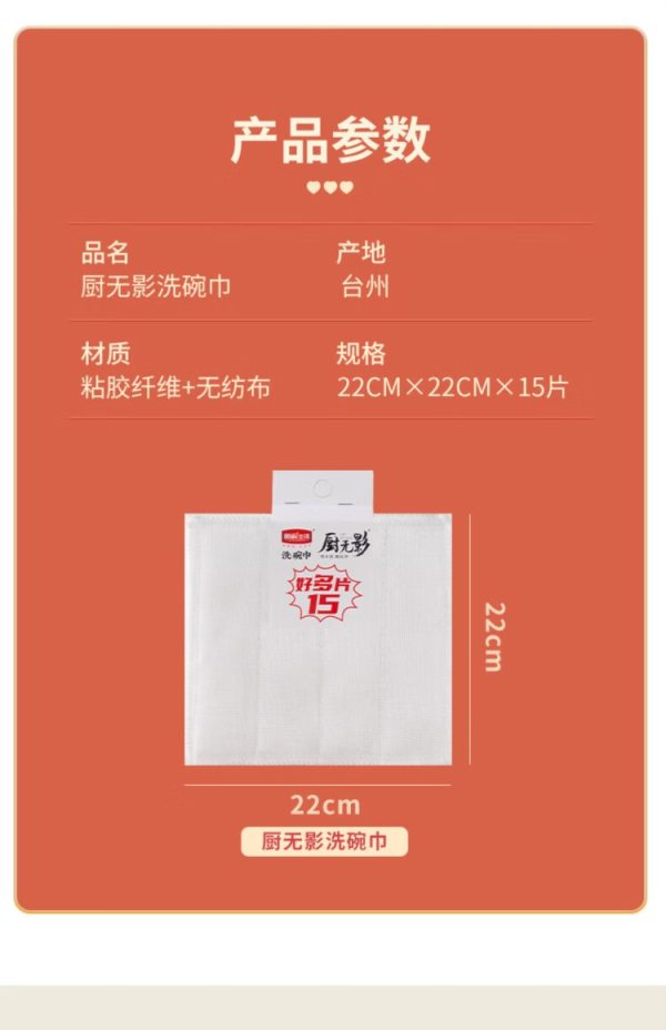 商品名称:新鲜生活 SH-7557 抹布去油污洗碗布家用厨房不沾油易清洗加厚洗碗巾22cm*22cm*15片厨无影洗碗巾(单位:包)