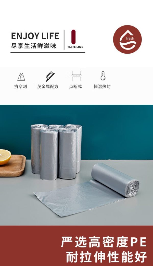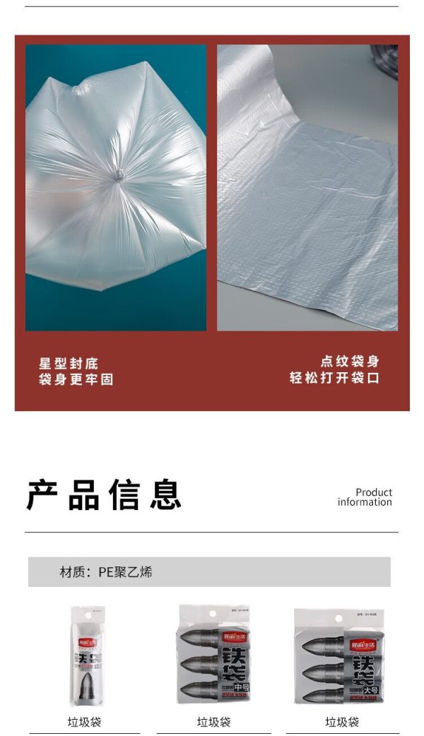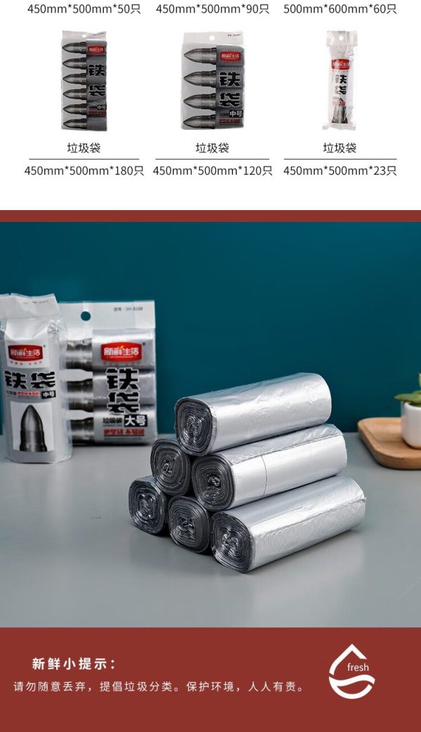 商品名称:新鲜生活 SH-8148 家用手提式加厚实惠装办公室商用厨房 450mm*500mm*180只(铁袋)垃圾袋(单位:包)