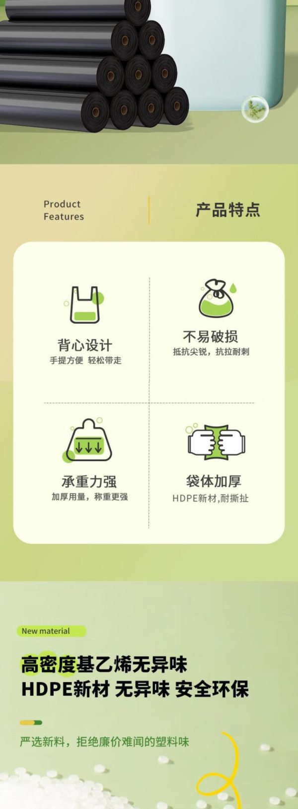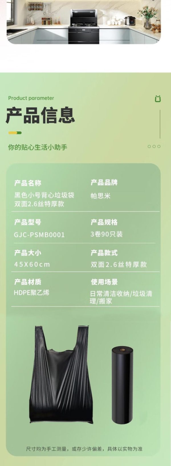 商品名称:帕思米 GJC-PSMB0001 45*60cm黑色小号背心垃圾袋 双面2.6丝特厚款(3卷90只装)