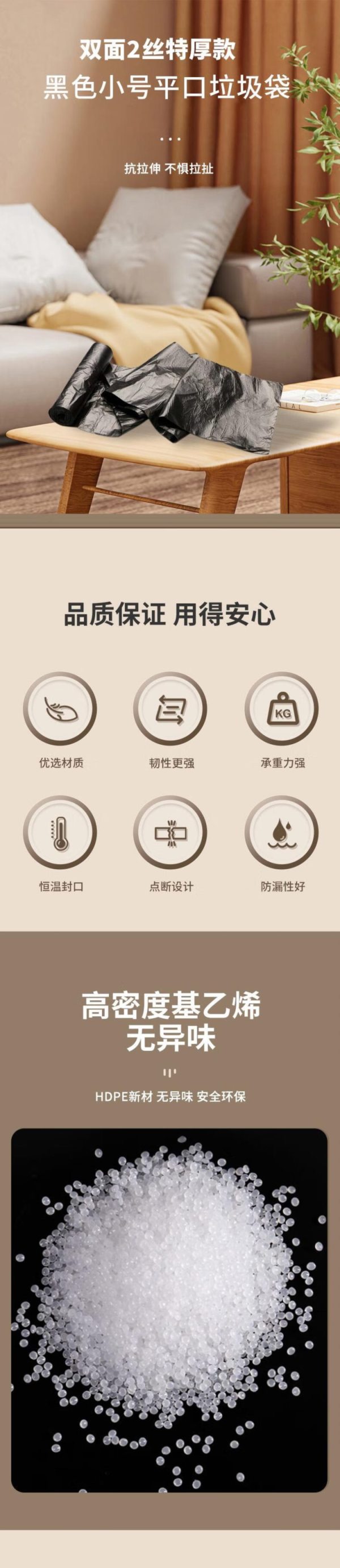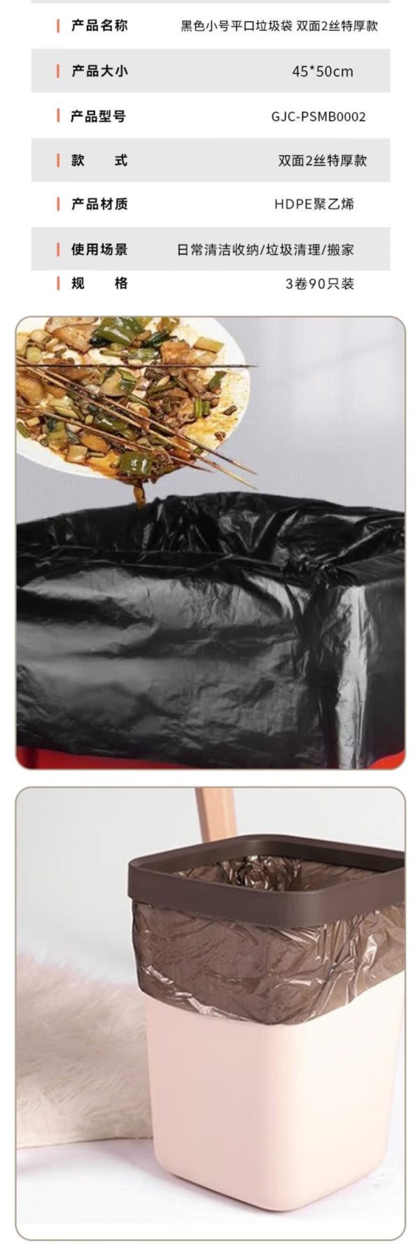 商品名称:帕思米 GJC-PSMB0002 45*50cm黑色小号平口垃圾袋 双面2丝特厚款(3卷90只装)