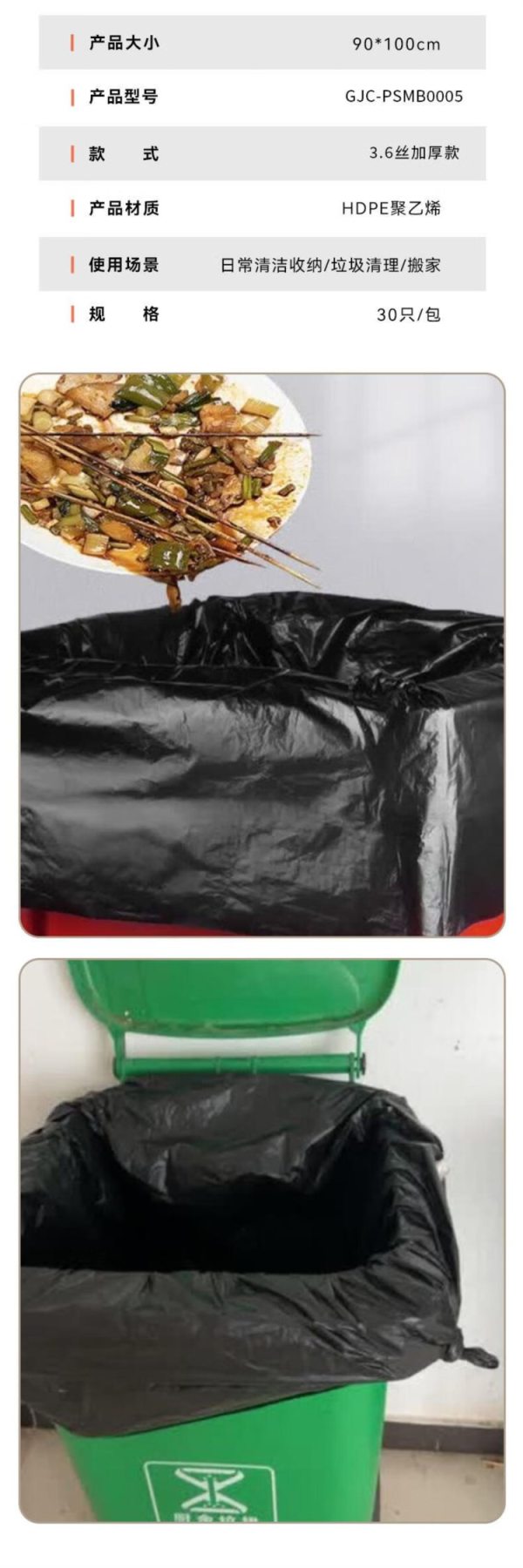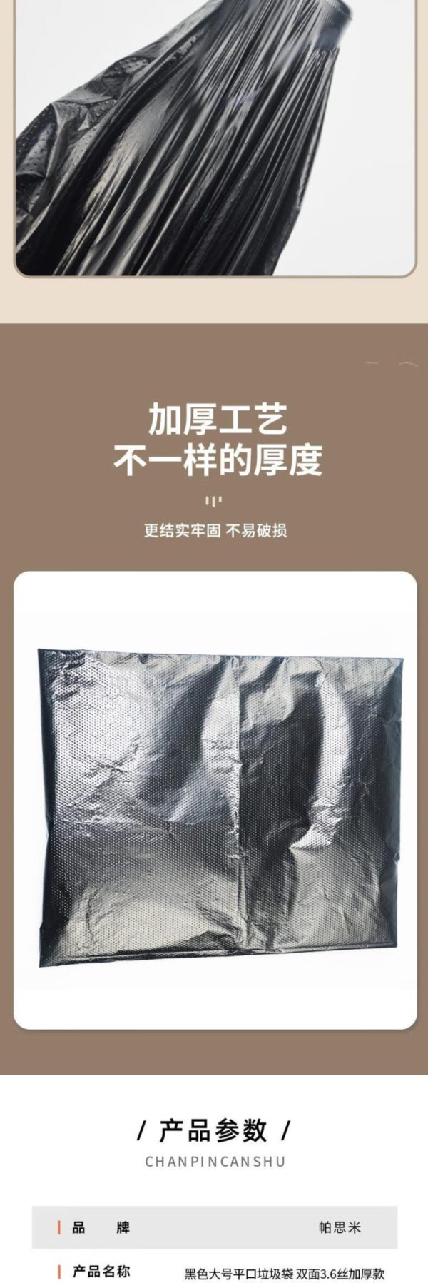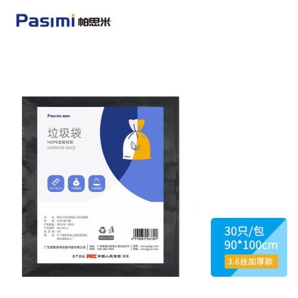 商品名称:帕思米 GJC-PSMB0005 90*100cm黑色大号平口垃圾袋 双面3.6丝加厚(30只/包)