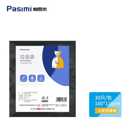 商品名称:帕思米 GJC-PSMB0006 100*120cm黑色大号平口垃圾袋 双面4丝加厚款(30只/包)