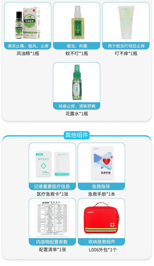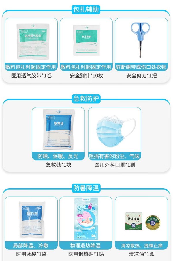 商品名称:爱备护 防暑急救包 ABH-GJC-L006G 含25种63件急救用品 单位:套