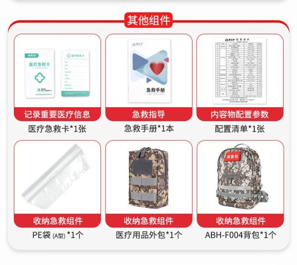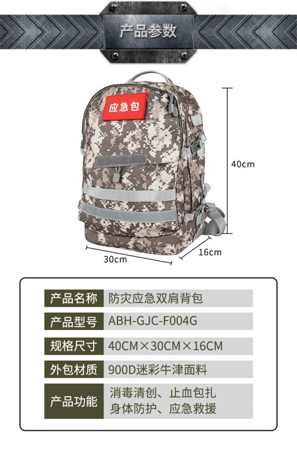 商品名称:爱备护 防灾应急双肩背包 ABH-GJC-F004G 含36种102件急救用品 单位:套