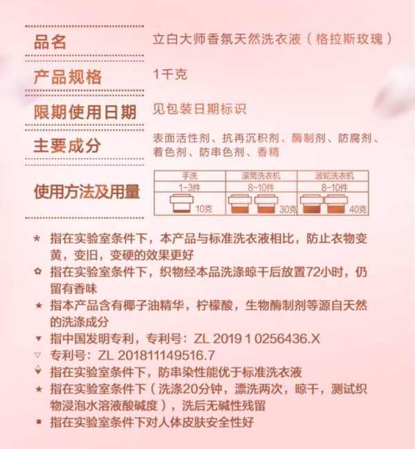 商品名称:立白(Liby) 大师香氛格拉斯玫瑰香味 2kg 洗衣液 (计价单位:瓶)