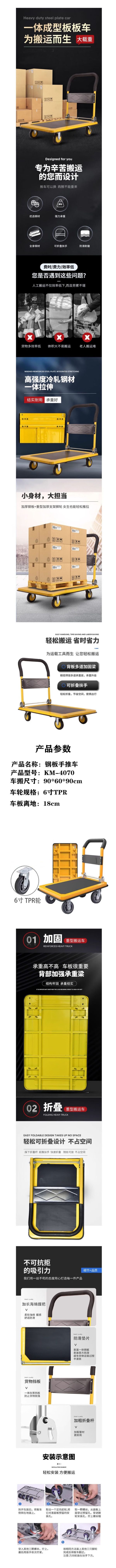 商品名称:宽迈 钢板手推车搬运车四轮小推车仓库折叠便携铁板平板车KM-4070 90*60*90cm(1辆装)