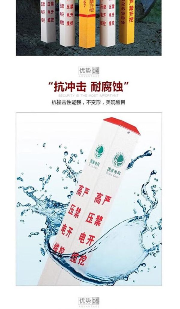 商品名称:宽迈 电缆光缆位置警示桩 KM-8001 180mm*宽180mm*高1200mm(1个装)