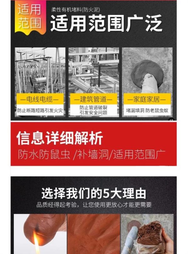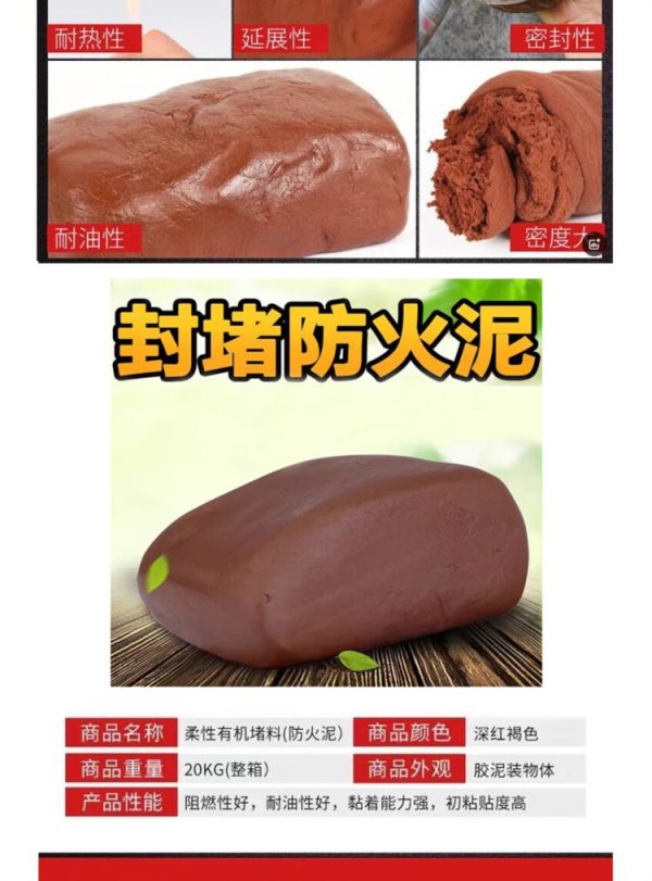 商品名称:宽迈 有机防火泥封堵空调密封胶泥有机防火泥20KG(1箱装)