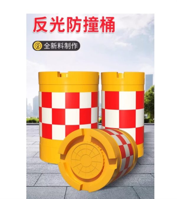 商品名称:宽迈 滚塑防撞桶道路交通设施防撞桶 黄底红白膜 400×700mm (个)