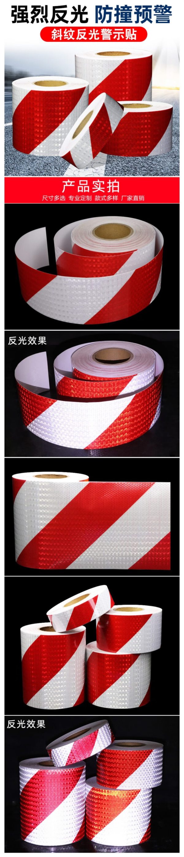 商品名称:宽迈 红白斜纹反光贴条安全警示胶带 闪亮星红白斜纹【15cm宽*25米长】
