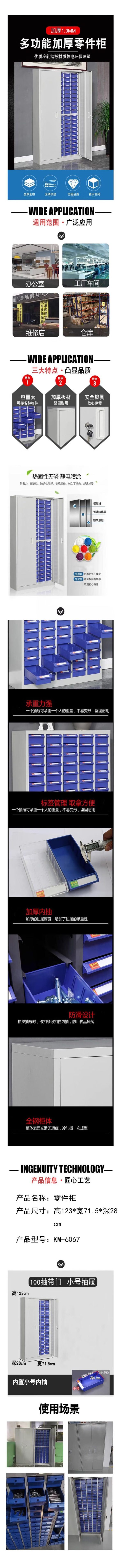 宽迈 100抽带门小号零件柜抽屉式重型工具柜收纳柜KM-6067 高123*宽71.5*深28cm(蓝色)