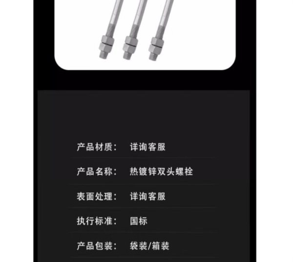 商品名称:宽迈 热镀锌耐张穿钉双头螺丝双头螺栓 M18*330(1个装)