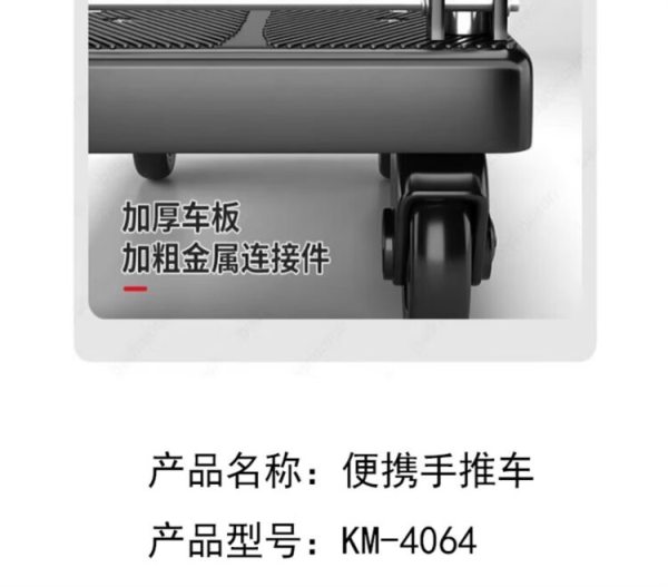 商品名称:宽迈 小推车平板车便携手推车加厚折叠小拖车KM-4064 60*90cm刹车款(1辆装)