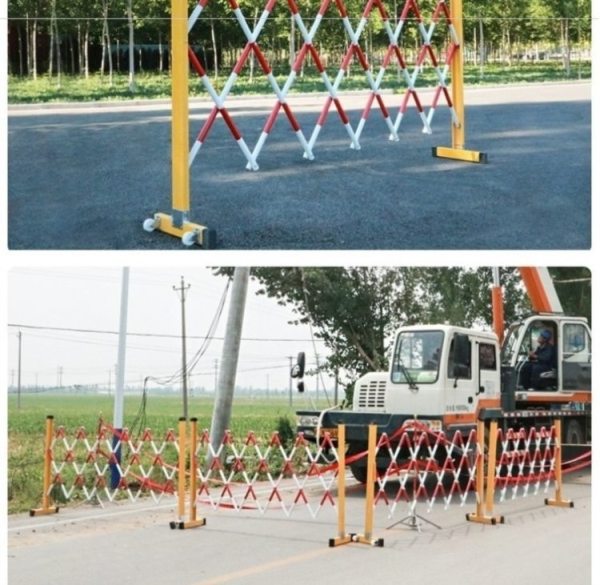 商品名称:宽迈 伸缩围栏可移动式隔离护栏玻璃钢(管式)红白色1.2米高*可伸2米