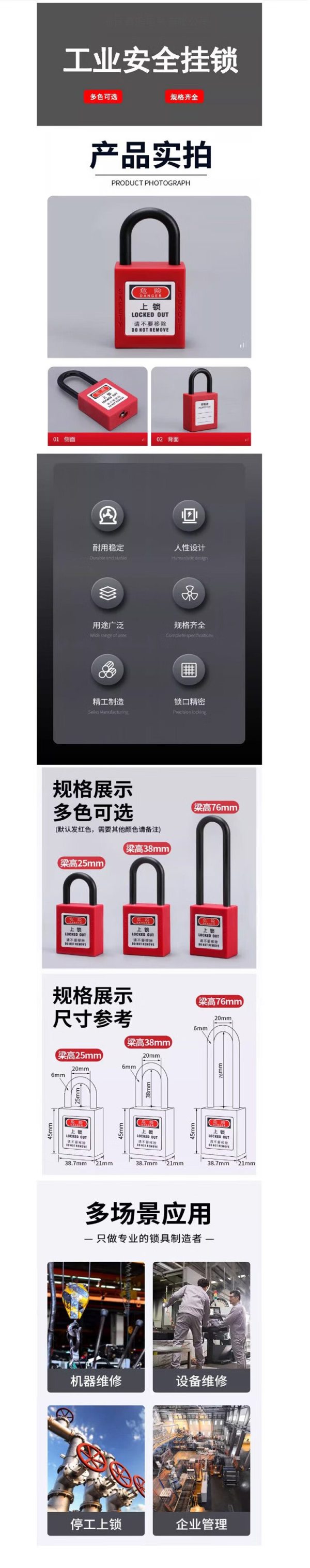 商品名称:宽迈 工业挂锁不锈钢安全挂锁电工绝缘梁38mm不通开(1把装)