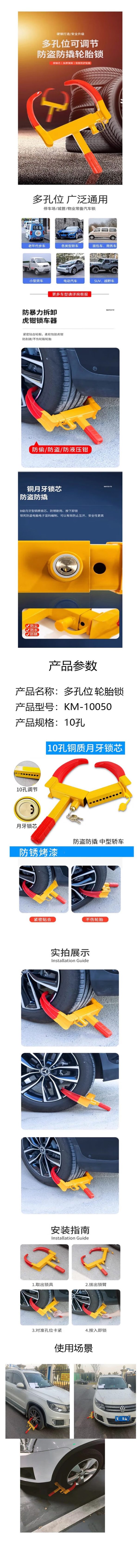 商品名称:宽迈 汽车锁车器 小轿车防盗车锁 车轮锁汽车轮胎锁 专用锁车器加重加宽加重锁体10孔调节铜锁芯(1把装)