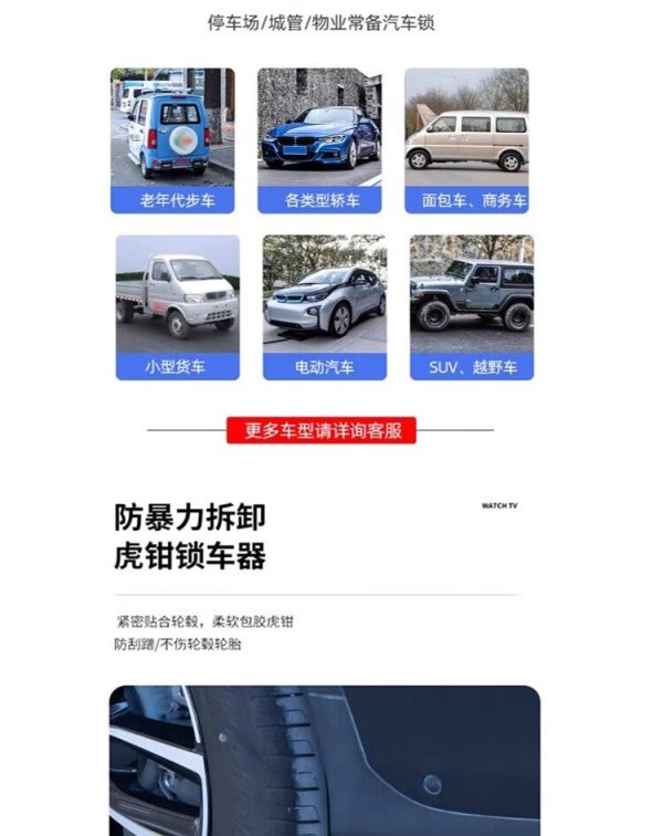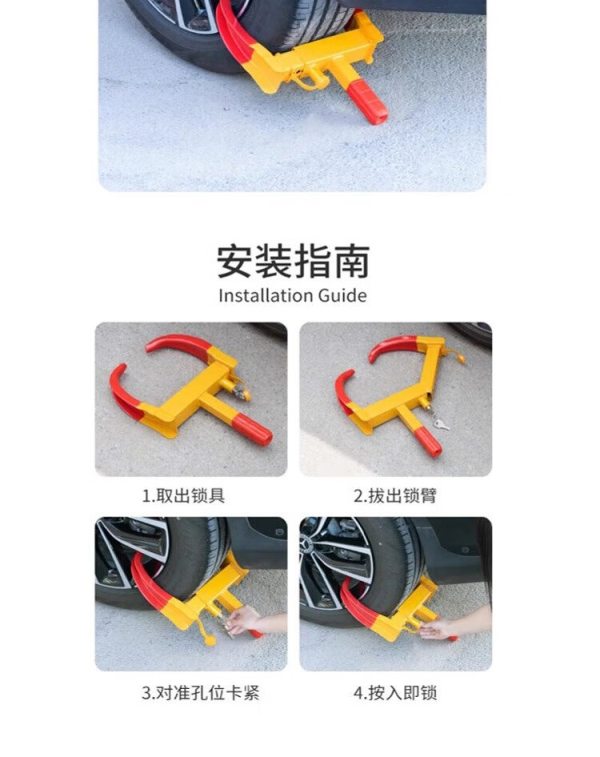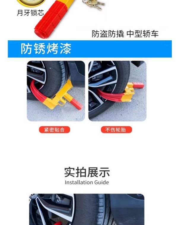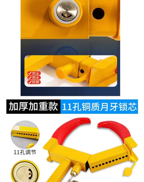 商品名称:宽迈 汽车锁车器 小轿车防盗车锁 车轮锁汽车轮胎锁 专用锁车器加重加宽加重锁体11孔调节铜锁芯(1把装)