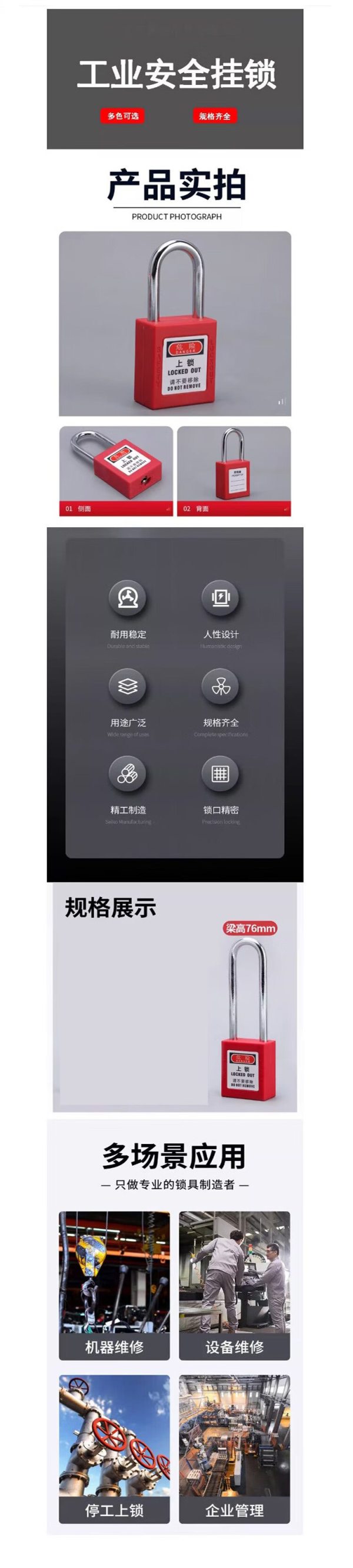 宽迈 工业挂锁不锈钢安全挂锁电工锁76mm钢梁不通开(1把装)