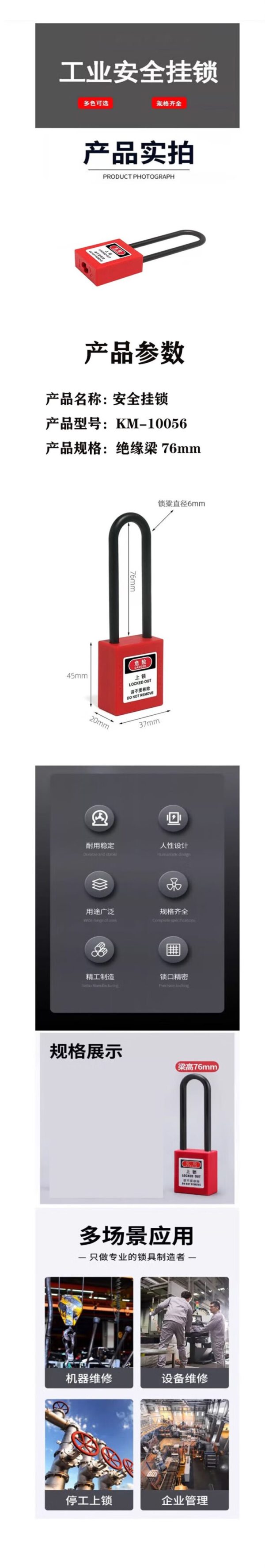商品名称:宽迈 工业挂锁不锈钢安全挂锁电工绝缘梁76mm不通开(1把装)
