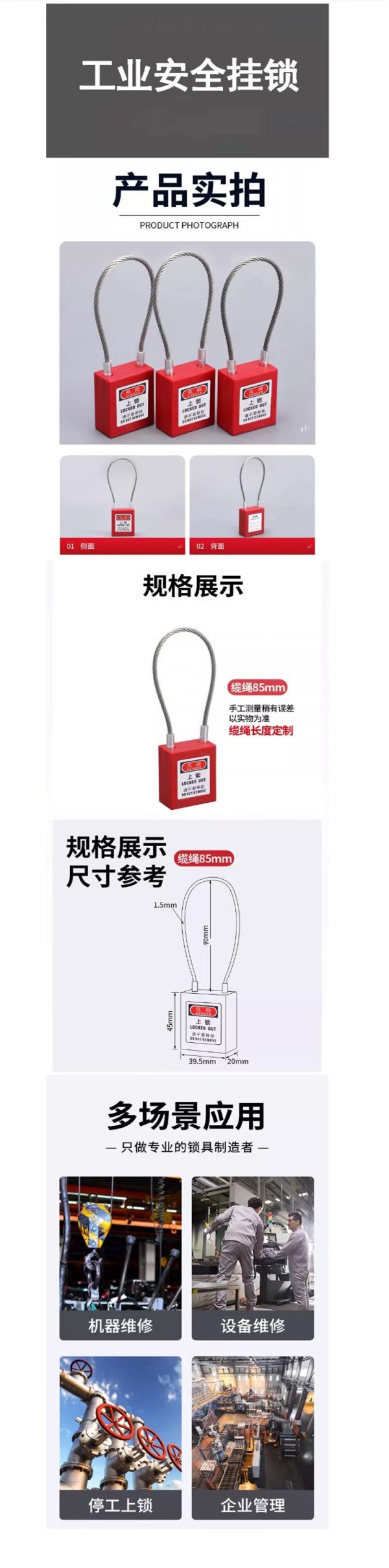 商品名称:宽迈 不锈钢缆绳安全挂锁90mm缆绳锁不通开(1把装)