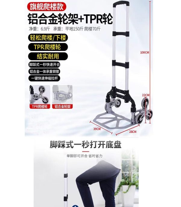 商品名称:宽迈 爬楼梯手拉车折叠铝合金小推车KM-6078 (1辆装)