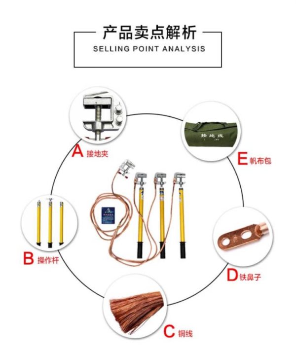 商品名称:信志连成 10KV平口接地棒25方接地线 1米棒+2米*3根+15米主线 接地软铜线