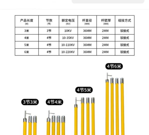 商品名称:信志连成 高压拉闸杆 令克棒 电力绝缘操作棒 驳接式 黄色 4节5米 10-110KV