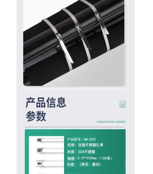 商品名称:信志连成 304不锈钢扎带金属扎丝室户外耐高温防腐蚀 KM-5002 4.6*1500mm