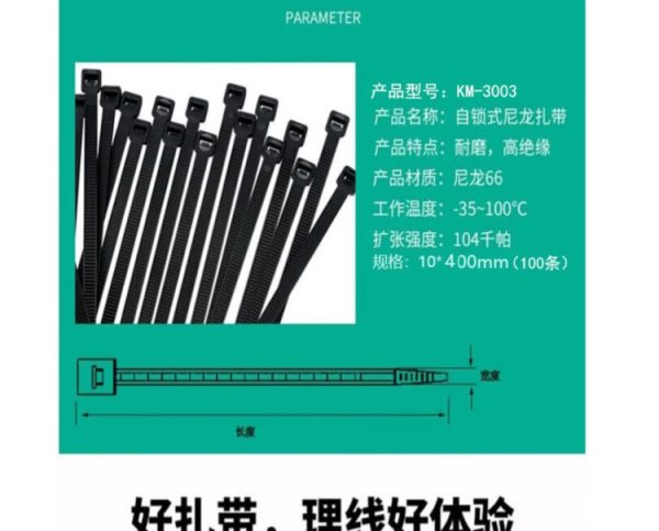 商品名称:信志连成 尼龙扎带塑料卡扣 强拉力固定条 KM-3003 10*400mm黑色(100根)