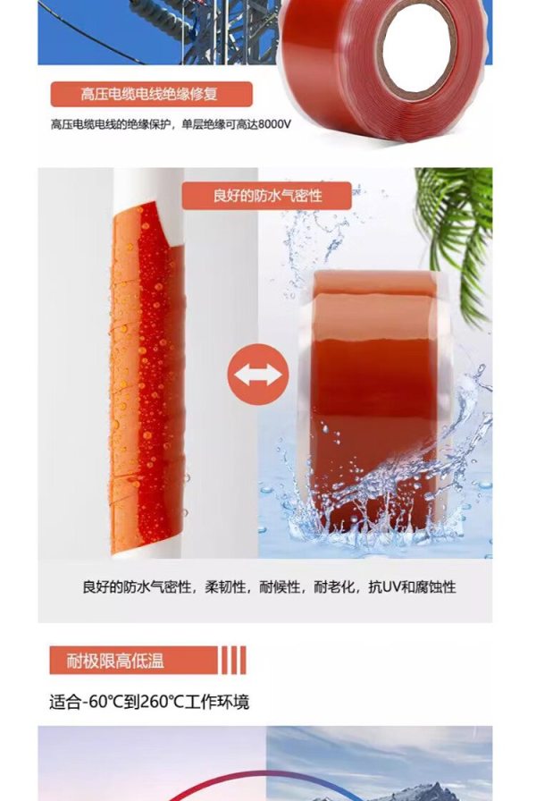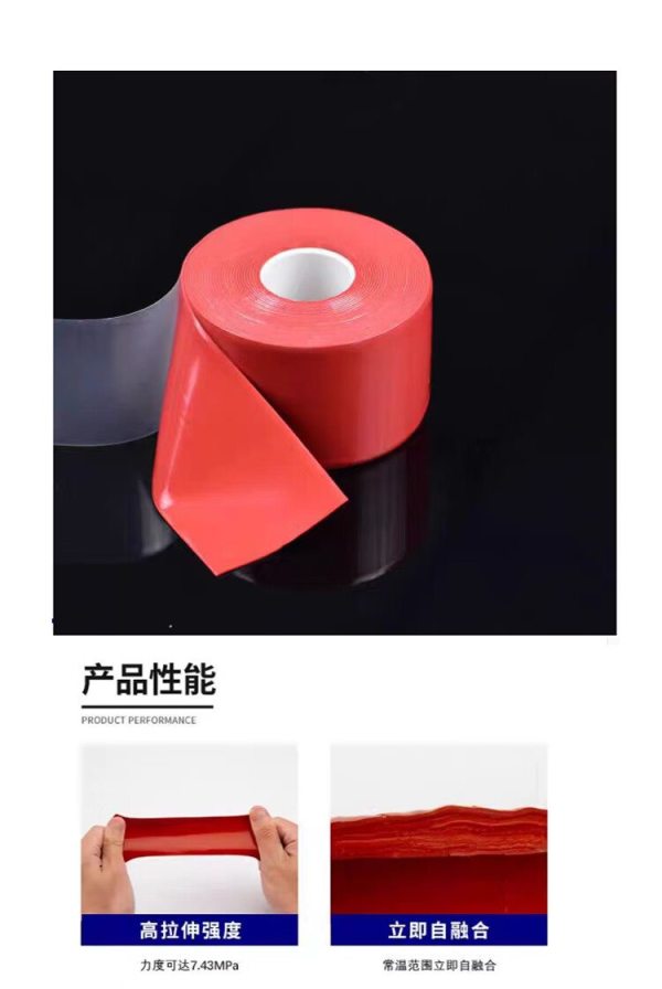 商品名称:信志连成 硅橡胶自粘带耐高温高压防水绝缘胶带电气胶带KM-4086 0.8mm*50mm*5m 红色(1个装)