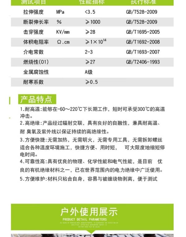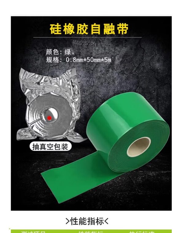 商品名称:信志连成 硅橡胶自粘带耐高温高压防水绝缘胶带电气胶带KM-4084 0.8mm*50mm*5m 绿色(一个装)