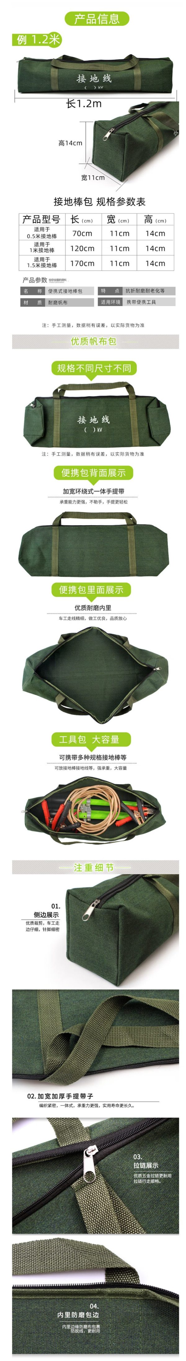 商品名称:信志连成 接地线接地棒包携带包帆布包工具包1.2米(适用于1米接地棒))