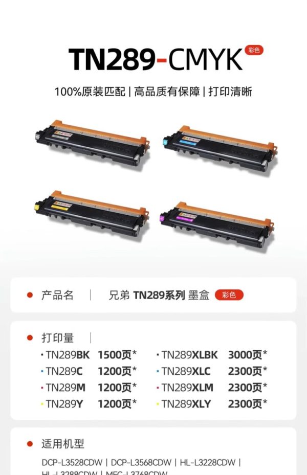 商品名称:兄弟(brother) TN289BK 约1500页 适用HL-L3228CDW、L3528CDW 墨盒 黑色 (计价单位:个)