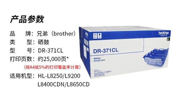 商品名称:兄弟(brother) DR-371CL 25000页 适用HL-L8250/L9200/L8400CDN/L8650CD 硒鼓 四色(黑青红黄) (计价单位:套)