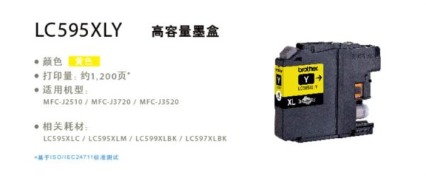 商品名称:兄弟(brother) LC595XLY 1200页 适用机型兄弟MFC-J2510 墨盒 黄色 (计价单位:盒)