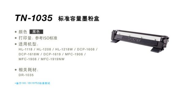 商品名称:兄弟(brother) TN-1035 1500页 兄弟HL-1218W、DCP-1618W、MFC-1819、MFC-1816、MFC-1919NW、HL-1118 墨盒 黑色 (计价单位:盒)